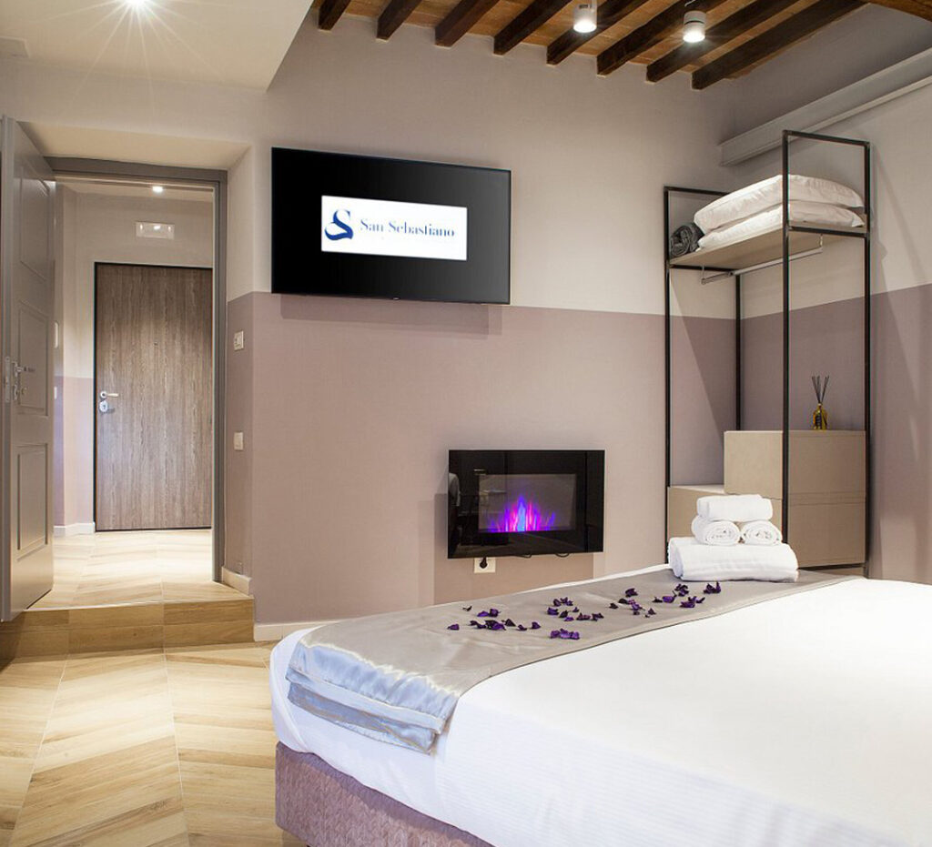 Questa suite esclusiva combina design contemporaneo e comfort di alto livello, offrendo un’esperienza unica nel cuore dell’Albania. Il protagonista dello spazio è l’iconica parete retroletto, con una finitura effetto marmo venato in tonalità rosso rubino, che dona carattere e raffinatezza all’ambiente. La zona notte si apre su un’area benessere privata, con una vasca freestanding posizionata …